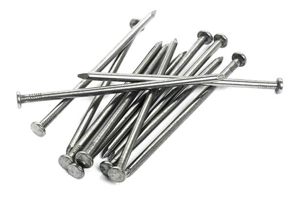 Common nails are usually made of stainless steel, copper, aluminum and galvanized metal. They have flat heads and slender shanks, which manufactured to be sturdiness. The common nails are widely used in woodworking, construction and so on. With the thick heads of the common nails, it is easy to drive them into the tough stuffs like: thin sheets of metal, wood and aluminum. Common nails are strong and stiff. They have notches near the head of the nail. These notches allow the nails to hold better.